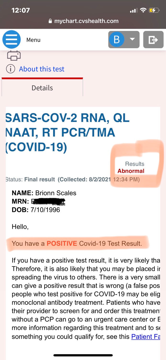 Hey everybody, greetings from quarantine. Yes, indeed, I have Covid sadly. Someone in my household was confirmed positive on Sunday, August 1, 2021. I had just came home from work that morning and was told the news a few hours later. This prompted me to hurry and schedule testing for my daughter and myself. Because my car is in need of work, we took a LYFT to try the CVS drive-thru free testing because it was the easiest and quickest solution....so I thought.